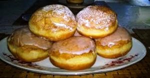 C’est quoi ? Ces beignets ronds et frits avec du saindoux sont traditionnellement recouverts d’un épais glaçage au sucre, fourrés à la confiture de fraise ou de rose.