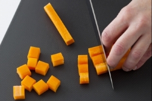 Pour tailler en macédoine, la technique : cela signifie couper les légumes en dés.