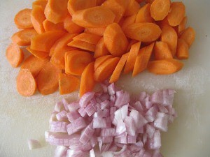 Le taillage en salpicon : les légumes sont détaillés en petits dés et liés d’une sauce.