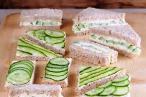 Il apparait que les afternoon tea de l’époque edwardienne devaient absolument commencer avec ces emblématiques petits canapés. » Le sandwich au concombre est l’aristocrate du plateau de thé, frais, gracieux, impeccable » écrit Oscar Wilde.