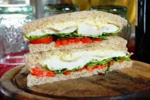 Si le Royaume-Uni n’est pas connu pour sa gastronomie, ce petit sandwich au concombre, très frais, mérite le détour. Il se compose de pain de mie sans croûte, de fromage de chèvre frais, de concombre, de ciboulette et de sel/poivre. Il constitue un en-cas parfait à l’heure du thé !