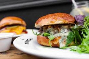 Prix : 12,90 € le double cheese burger et le portobello burger, frites (4€), disponible en click & collect.