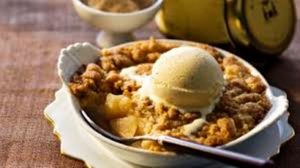 Le nom de ce dessert renommé vient du verbe anglais to crumble qui signifie « émietter » ou « tomber en miettes ». On le prépare en effet en émiettant une pâte composée de beurre, de farine et de sucre sur une couche de fruits de saison (pommes, poires, rhubarbes, prunes, abricots, pêches, mangues, fruits rouges…).