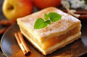 Les ingrédients nécessaires pour réaliser la recette sont : saindoux, beurre demi-sel, farine tamisée, eau froide, pommes à cuire, sucre roux, clous de girofle, lait, crème fraîche…