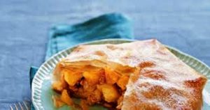 Réalisé avec de la pâte filo, ce dessert croustillant fleure bon l’automne avec ses pommes caramélisées, ses raisins secs, ses noix et sa cannelle. À savourer avec un thé bien chaud !