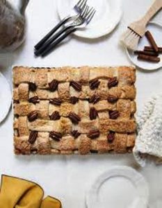 L’apple pie américaine consiste en une garniture généreuse de pommes épicées à la cannelle entre deux pâtes, à la manière d’une tourte. La pâte du dessus peut recouvrir l’ensemble de la tourte ou bien être réalisée en un joli quadrillage.