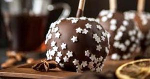 Les ingrédients nécessaires pour réaliser la recette sont : pommes (type Pink Lady), tablette de chocolat pâtissier, beurre, étoiles en sucre pour la décoration…