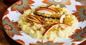 Original à souhait, ce dessert onctueux et savoureux revisite à merveille le traditionnel riz au lait. Ici, il est préparé comme un risotto, accompagné de pommes, de miel, de pollen et de citron. Une recette gourmande qui fera à coup sûr son petit effet auprès de vos invités !