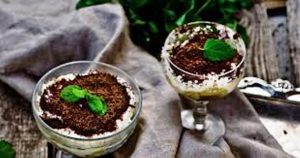 Les ingrédients nécessaires pour réaliser la recette sont : grosses pommes, douces, fécule de maïs, sucre vanillé, cottage cheese, yaourt allégé, biscuits cuillères, rhum, chocolat en poudre…