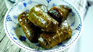 Ingrédients principaux : Feuilles de vigne, riz, herbes, parfois viande hachée.