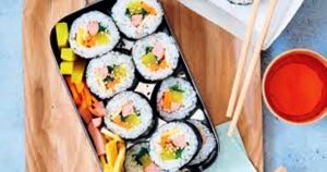 Pour l’assaisonnement du riz : vinaigre de riz, huile de sésame grillé, sel…