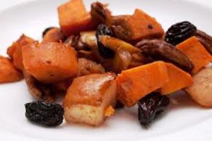 Le tzimmes ou tsimmes est un ragoût juif ashkénaze traditionnel généralement préparé à partir de carottes et de fruits secs tels que des pruneaux ou des raisins secs, souvent associés à d’autres légumes-racines (y compris l’igname).