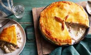 La chicken pie ou tarte au poulet et aux champignons est une tarte britannique courante, classée comme l’un des types de tarte salée les plus populaires en Grande-Bretagne et souvent servie dans les restaurants de fish and chips.
