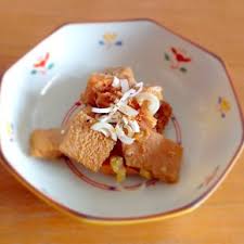 Les divers ingrédients utilisés pour réussir la recette sont : tripes de veau, miso, sucre, sauce soja, sake, tranches de gingembre, gousses d’ail écrasées…