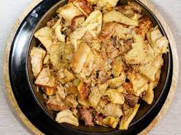 Les divers ingrédients utilisés pour réussir la recette sont : tripes de boeuf coupées en morceaux
