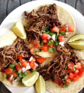 La birria de bœuf est généralement servie avec du citron vert, des rondelles d’oignon et de la coriandre fraîche finement hachée. Très tendre, la viande s’effiloche aisément à la fourchette et peut être dégustée recouverte de sauce dans une tortilla de maïs.