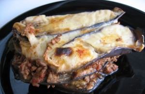Cette moussaka traditionnelle nécessite de désosser et de hacher un morceau d’épaule d’agneau, de la faire revenir à l’huile d’olive avec des oignons, de l’ail, des herbes, des épices (thym, persil) et des cubes de tomates, puis de la recouvrir d’une couche de rondelles d’aubergines frites.