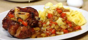L’osso buco, littéralement « os troué » est la rouelle d’un jarret de veau mijoté avec du vin blanc, du bouillon et de la tomate.