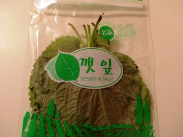 (feuilles de sésame marinées avec du piment en poudre, assez salées).