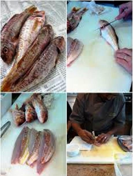 Les ingrédients utilisés pour réaliser cette recette sont : rougets, beurre, champignon, taillés en petits dés, échalote hachée, vin blanc italien, escalopes de champignons sautés au beurre persil haché, huile d’olive, sauce tomate, parmesan…