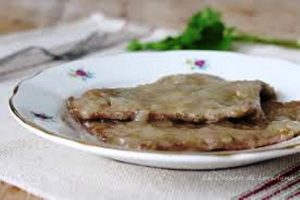 Une spécialité de l’ouest de la Roumanie est la mosaïque de șnițel , composée de deux fines couches de viande (généralement chaque couche de viande différente) et d’une garniture de légumes (généralement des champignons). Il existe également une recette courante de șnițel de ciuperci, un beignet de champignons.