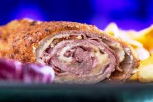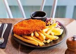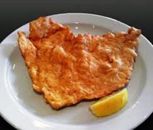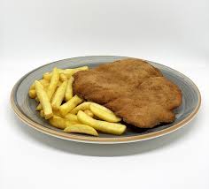 Appelé shnitsel, il est fait de veau haché, façonné en fine galette, assaisonné de sel et de poivre noir, puis pané et frit. Le plat est généralement servi avec un choix de pommes de terre en purée ou rôties, de frites ou simplement d’une salade de tomates. Il est courant dans les relais routiers et il est généralement commandé à la carte, accompagné d’un quartier de citron, mais on peut également le trouver dans les rayons surgelés des supermarchés ou préparé et prêt à cuisiner.