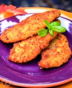 En République de Macédoine du Nord, le plat appelé ( shnitzla ) est un morceau de porc assaisonné de sel et de poivre noir, pané et frit. Il est généralement servi avec de la purée de pommes de terre ou des pommes de terre frites avec une garniture de salade verte.