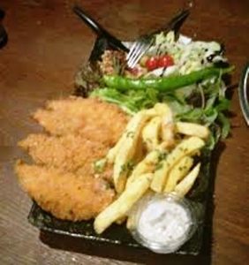 Dans les pubs, l’escalope est généralement accompagnée de frites, de salade et parfois de bacon. Les escalopes nature et parmigiana sont parfois connues sous les noms familiers de « Schnitty », « Snitty », « Schlitter », « Parma » ou « Parmigiana ».