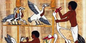 Les berges du Nil sont un point de passage pour les oiseaux migrateurs que sont les oies et les canards. C’est ce qui a permis aux Égyptiens de comprendre la façon dont les oiseaux se nourrissaient pour constituer des réserves de graisse pour le trajet retour. Ils ont alors reproduit ce comportement naturel durant la migration en utilisant l’alimentation par phases (représentée sur plusieurs tombes égyptiennes).
