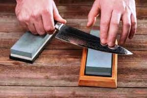 Parce qu’il n’y a rien de plus pénible (et dangereux) que d’essayer de couper avec des couteaux non affûtés. Equipez vous d’une bonne pierre d’affûtage ou d’un fusil à aiguiser, ou mieux encore, faites-les aiguiser par un professionnel de temps en temps. Vous verrez comme c’est merveilleux de trancher les tomates ou les oignons avec un couteau qui coupe parfaitement !
