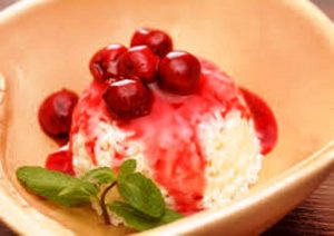 Ingrédients: riz rond caroline, lait, gousse de vanille, beurre, sel, fraises ou framboises, cerises dénoyautées, tranches d’ananas frais, sucre en poudre, kirsch…