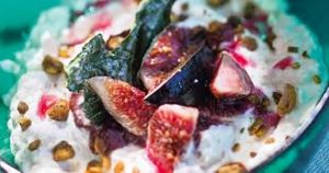 Ingrédients: riz (riz rouge long ou riz rond complet), figues fraîches, lait entier, crème liquide très froide, sucre, porto, miel, amandes effilées…