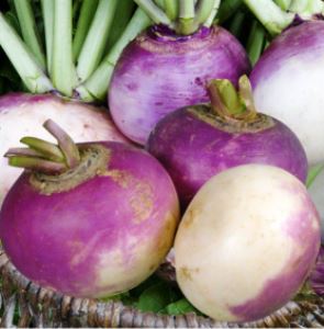 Le navet blanc globe à collet violet est est une excellente variété de navet, très résistante au froid.