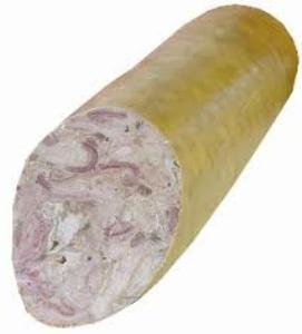 Assez communément, il s’agit d’une charcuterie composée de la ventrée complète de porc : gros intestin (40 % environ), menus (environ 43 %), estomac (environ 17 %) sans adjonction de gras ni liants, avec addition de sel, poivre, épices et aromates.