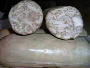 Landouille de viande corrézienne est faite d’un mélange de morceaux de maigre et gras de porc haché, assaisonné avec épices, poussé dans un gros boyau de porc et elle présente la particularité d’être saumurée.