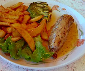 Cette andouillette est dégustée dans les bouchons lyonnais.