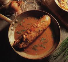 Actuellement préparée à l’aide de chaudins et de maigre de porc, sa recette originelle, donnée par Joseph Favre, nécessite de l’agneau, des queues d’écrevisses, du blanc de poulet, du ris de veau, du jambon, du lard et beaucoup de truffes.