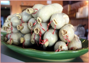 L’andouillette de Chablis est d’un diamètre assez petit, elle est  fabriquée à partir d’intestin de porc, en grande longueur.