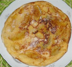 aaaaapasterasLe pasteras aux pommes  est une sorte de grosse crêpe traditionnelle des Pyrénées elle est  épaisse et est accompagnée avec des pommes parfumées à la vanille.