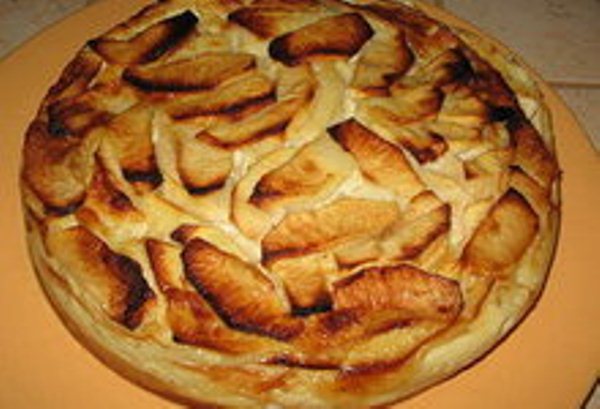 La tarte normande est constituée de crème fraîche épaisse, d’œufs, de sucre semoule, de calvados et bien évidemment de pommes.