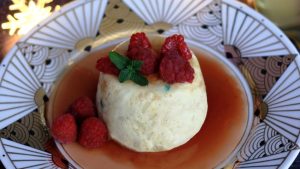 Le riz à la Dauphine est un riz au lait avec des macarons amers, lié à l’œuf, s’aromatise au cédrat.