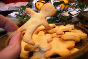C’est un petit sablé de forme anthropomorphe, on y voit la représentation de l’an neuf qui vient à peine de naître à moins qu’il ne s’agisse de la représentation de l’enfant Jésus.
