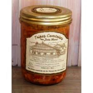 Á base de triperies de viandes bouchères sélectionnées (Bœuf), agrémentées de garnitures aromatiques (tomate, carotte…), et d’un vin blanc du Jura sélectionné.