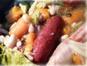 Avec l’hiver et ses légumes de saison, quel plaisir de manger une bonne potée du Périgord composée de : haricots lingots, manchons de canard, gésiers d’oie émincés, chou, carotte, navet, bouillon de volaille, graisse d’oie, thym, laurier, épices.