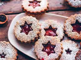 En Autriche les linzer kekse sont composés de cannelle, d’amandes, de jaunes d’œufs et d’un fourrage à la confiture. Ils sont faits d’une base de biscuit et d’un biscuit en couronne sur le dessus, renfermant une confiture de framboise.