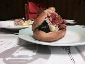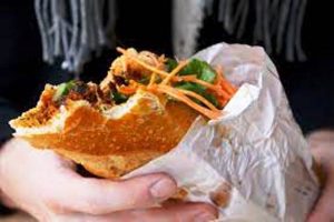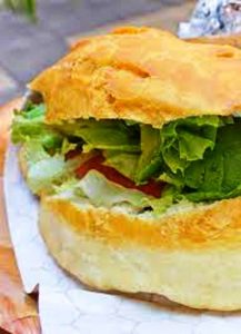 Hérité de l’immigration italienne, c’est le surnom donné au pain quotidien tunisien, on le reconnait à sa mie généreuse et à sa couleur pâle. Pour ce sandwich méditerranéen, le pain est garni de slata mechouia – littéralement salade grillée – aux poivrons, oignons, tomates, piment, ail mais également d’œufs durs, de pommes de terre, harissa maison, d’olives noires, d’une belle quantité de thon blanc émietté et d’autres condiments au choix. Ce sandwich très complet est un hymne aux saveurs estivales.
