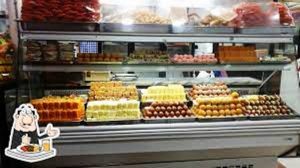 Encas, plats principaux et mets sucrés israéliens servis dans un restaurant animé décoré de touches rétro et de carreaux estampés.