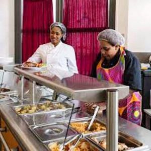 Plats africains à prix différencié servis dans une cafétéria à l’ambiance détendue, installée dans un foyer de travailleurs migrants.