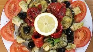 Salade Éthiopienne composée avec les ingrédients suivants : salade romaine, piment vert (ou poivron), échalote, gousse d’ail, cédrat vert, tomate…