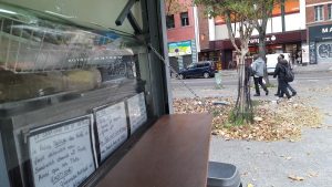 On adore : la pomme de terre garnie de tous les mezzés (kumpir) servie avec une petite salade de fêta (10€), le chig köfte en durüm (galette de blé) composé d’un steak végétarien maison, de menthe, persil, salade, cornichons et d’une sauce grenade (4€). Et pour l’hiver coup de coeur pour la chorba, une soupe de lentilles et de légumes aux épices (5€).